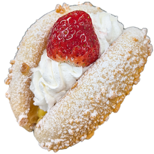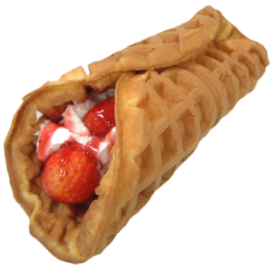 ホイップクリーム、カスタードクリーム、ストロベリーソース、いちごを包みました