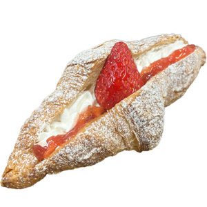 サクサクのクロワッサンにホイップクリームといちごジャムを絞り、いちごをトッピング