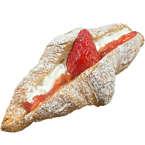 サクサクのクロワッサンにホイップクリームといちごジャムを絞り、いちごをトッピング